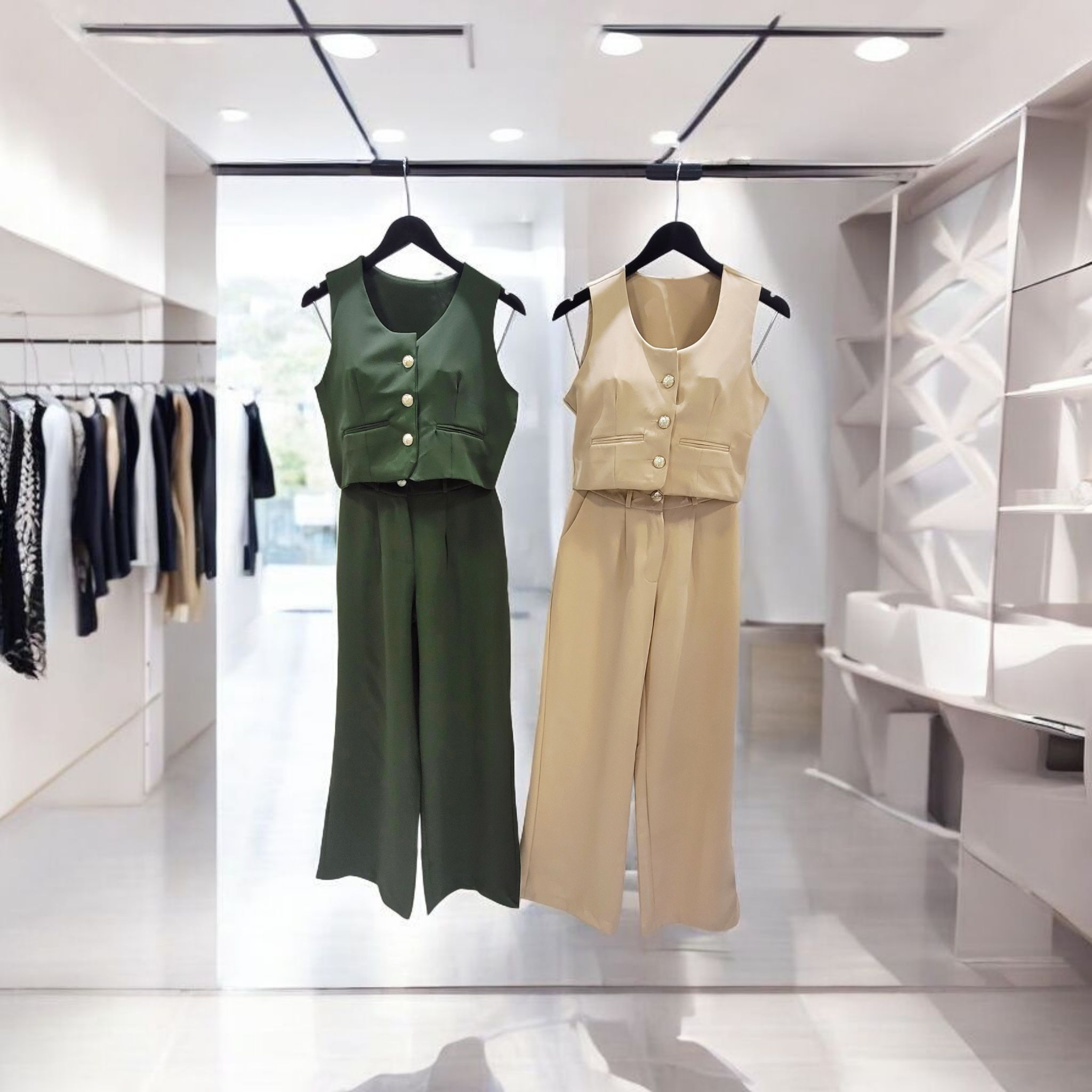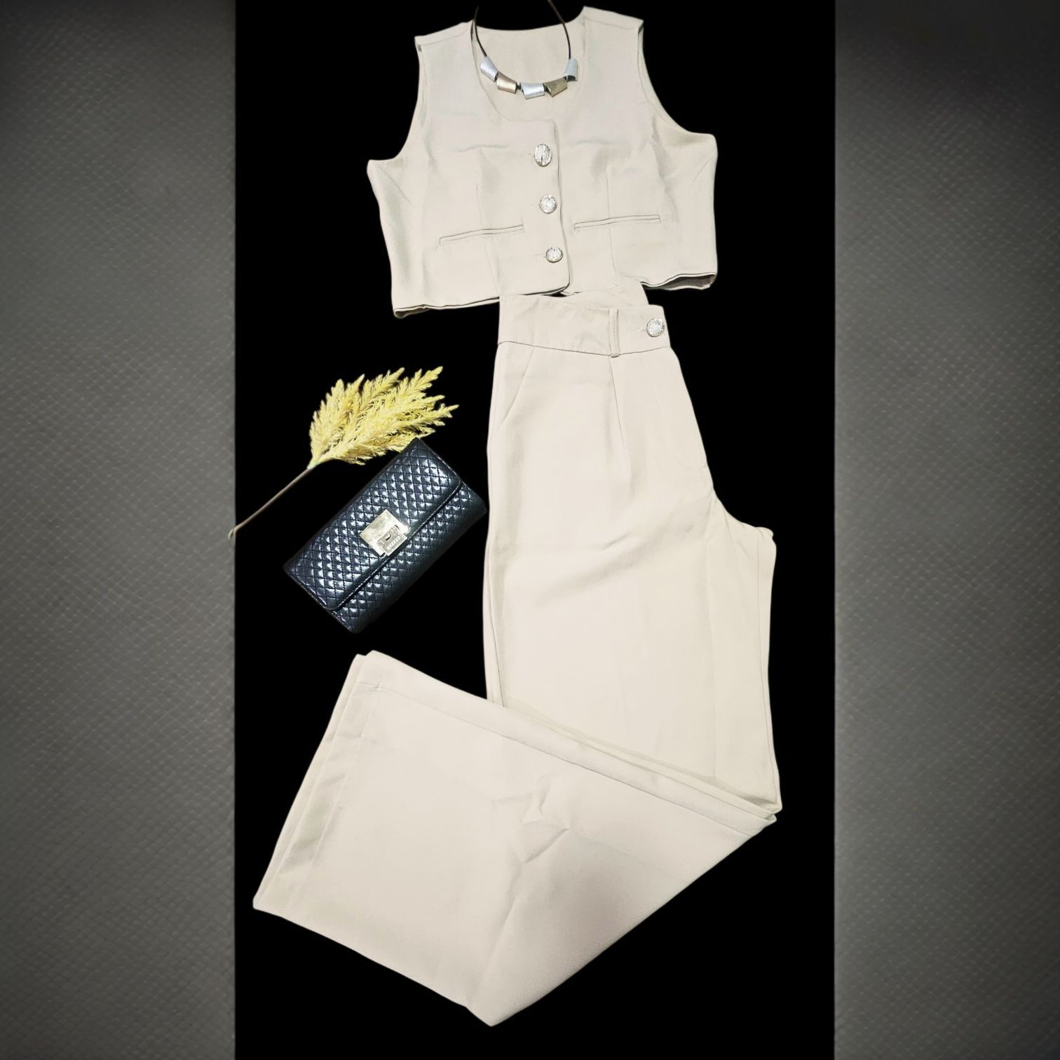 Nosso conjunto de alfaiataria com calça e colete é a escolha ideal para mulheres que valorizam um visual moderno e refinado. Confeccionado em tecido encorpado, com caimento perfeito e corte impecável, ele traz sofisticação sem abrir mão do conforto. Use com camisa para um look elegante ou com top para um toque fashion e ousado.